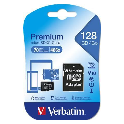 1 kép    Verbatim 128GB microSDXC Verbatim UHS-I Premium memóriakártya + adapter (44085)