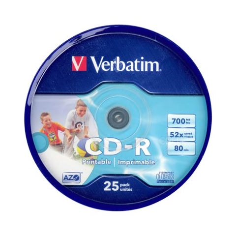 Verbatim CD-R írható CD lemez 700MB matt nyomtatható 25db hengeres (43439) írható és újraírható média 1 kép