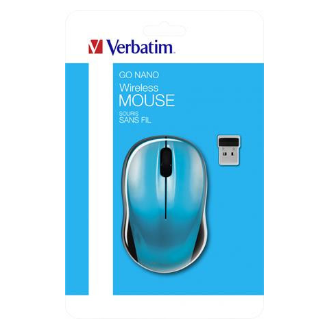 Egér, vezeték nélküli, optikai, közepes méret, USB, VERBATIM Go, karibikék a nano USB vevőegység elég kicsi ahhoz, hogy zavartalanul csatlakoztatva maradjon sima, ívelt kialakítás, kényelmes használat vonzó, elegáns színekben az elem tartozék 2 év gara