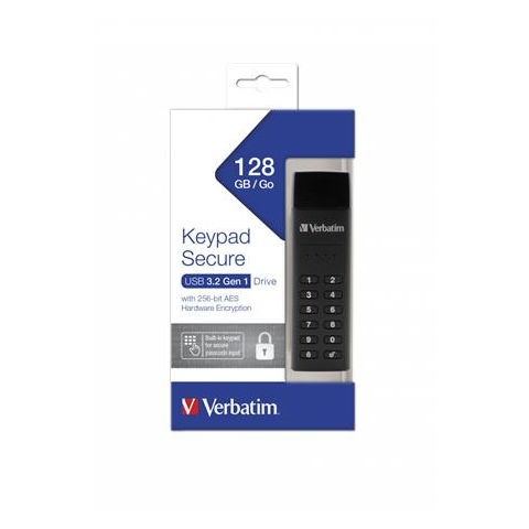 2 kép Verbatim Pendrive, 128GB, USB 3.2, titkosítás, 160/130Mb/s, VERBATIM "Keypad Secure" Pendrive