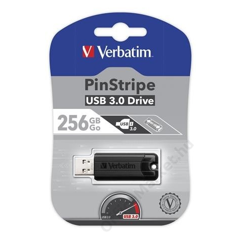 Pendrive, 256GB, USB 3.2, VERBATIM Pinstripe, fekete (UV256GPF3) -kitolható/visszahúzható kialakítás -nagy sebességű USB 3.2 Gen1 csatolófelület -kulcskarikára fűzhető -olvasási sebesség: 30 MB/s -írási sebesség: 10 MB/s -méret: 55 x 19 x 7mm -re