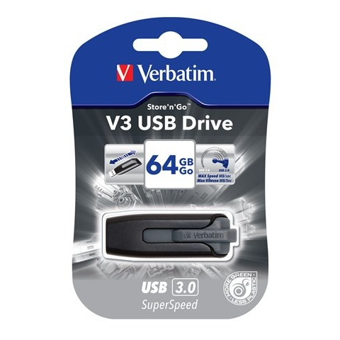 1 kép    Verbatim Pendrive, 64GB, USB 3.0, 80/25 MB/sec, "V3", fekete-szürke Pendrive