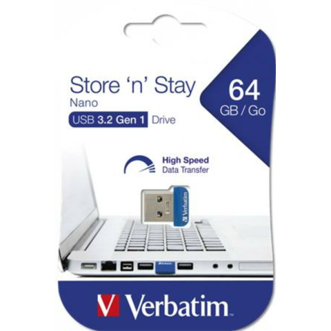 Pendrive, 64GB, USB 3.2, 80/25MB/s, VERBATIM Nano (UV64GNS) Alacsony profilú USB meghajtó, melyet úgy terveztek, hogy akár állandó kiegészítőként is használhassa készülékében. Kisebb, mint egy egyeurós érme. Ideális netbookokhoz, ultraboo