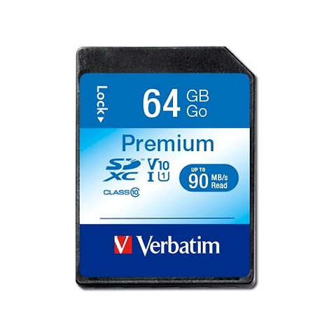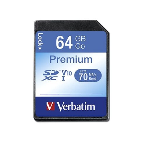 Memóriakártya - SDXC, 64 GB, 90 MB/s olvasási sebesség, 10 MB/s írási sebesség, Class 10, U1, V10Video Class 10 Verbatim SDXC 64GB Premium memóriakártyaA SDHC/SDXC memóriakártyák a legnépszerűbb adathordozók közé tartoznak. Használhatók okostelefonokban, de más eszközökben, például GPS-ben, MP3-lejátszókban, di