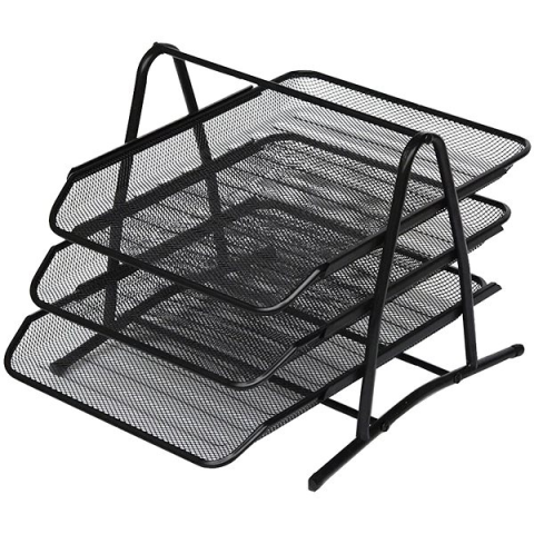Irattartó tálca - szabadon álló, fém, A4 formátum, tartozékok: gumi elemek alul és feliratozható címkék, 3 rekesz, méretei 27 × 29,5 × 29 cm (ma × szé × mé), fekete kivitel, tömege 1,085 kg A remek Verk 01652 Fémhálós asztali irattálca, 3 fiókos, fekete termék legfőbb előnyei A remek, fém anyagú, A4 formátumú Verk irattartó tálca 3 rekeszes a dokumentumok rendszerezéséhez és könnyű eléré