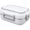 Uzsonnás doboz - osztott, elektromos, űrtartalma 0,9 l, mérete 12 × 25,5 × 19 cm (Ma×Sz×Mé), fedél klippes rögzítéssel, hordozó fül és evőeszköz tárolóhely a csomag része, alkalmas mosogatógépbe, anyaga rozsdamentes acél, evőeszköz és tok a csomagban, fehér kivitel A praktikus Verk uzsonnás doboz szilárd kapcsokkal ellátott, biztonságosan lezárja a tartalmát, és 0,9 l térfogatú. A belső elrendezés rögzített és eltávolítható részekből áll, amelyek ru