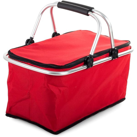 Piknikkosár - textil, szögletes, összecsukható és csúszásgátlós fogantyú, cipzárral zárható, mérete 28 × 48 × 22 cm (Ma×Sz×Mé) Termofunkční piknikový košík se skládacím rámem. Udržuje chladnou teplotu nápojů, šťavnatost ovoce a občerstvení. Dokonalý na letní výlety k vodě, do hor a na pikniky v parku. Vnitřek koše je