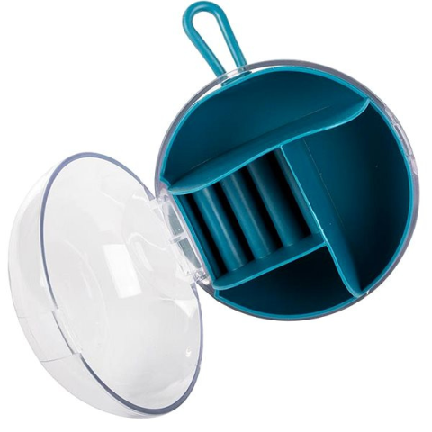 Ékszerdoboz - utazó, rekeszek ékszerek elhelyezéséhez, átmérő 9 cm, magasság 6 cm, akasztófül hossza 3 cm