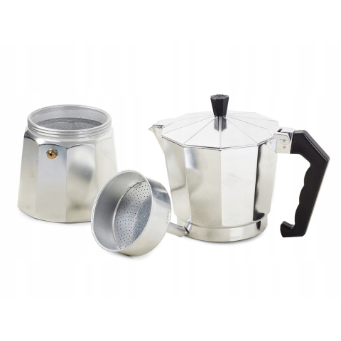 A kávéfőzőt szilikon gumitömítéssel látták el, ami a könnyű lezárásról, illetve a tökéletes tömítésről egyaránt gondoskodik. A kotyogó kávéfőző tulajdonságai: Anyaga: fém- alumínium 6 személyes Műanyag fogó Biztonsági szeleppel ellátva Használható: gáz-,