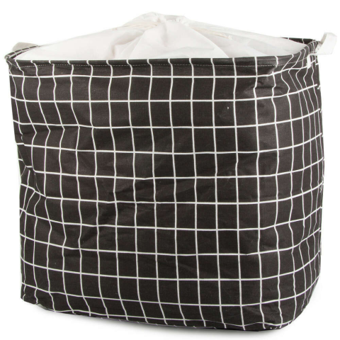 Verk Group VG 01941_CZK összecsukható szennyeskosár, 90 liter, fekete/kockás bútor termékleírás