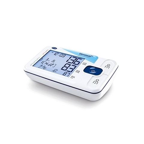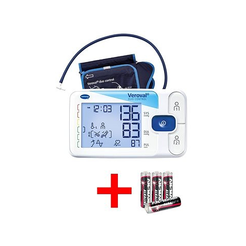 Vérnyomásmérő felkaros - oszcillometrikus és korotkov (hallgatózásos) mérési módszer, aritmia mérése, vérnyomásmérés, pulzusmérés 30 - 199 5 % pontossággal, 42 cm-es mandzsetta, kijelző és okos, 2 felhasználónak, a memóriában max. 200 mérést tárol, 4 AA elemmel, elemek és USB kábel a csomagban, fehér kivitel, mérete 17 × 8,2 × 24,9 cm (Ma×Sz×Mé), tömege 924 g A HARTMANN Veroval duo control felkaros vérnyomásmérő a szabadalmaztatott Duo Sensor technológi
