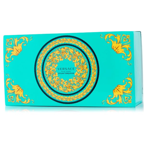 Parfüm szett - tartalma: EdT 100 ml, testápoló 100 ml, tusfürdő 100 ml, kozmetikai táska A Versace Dylan Turquoise parfüm egy frissítő és modern illat, amely azonnal a napsütötte tengerpartra repít. Olyan nők számára készült, akik energikus és élénk illatot keresnek. A VERSACE Dylan Turqu