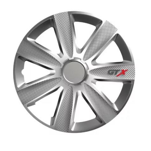 Dísztárcsa 14 GTX Carbon Silver | 4 darabos szett 14 GTX Carbon Silver - 4 darabos dísztárcsa készletJó minőségű könnyen felrakható dísztárcsa készlet, mely az acélgyűrűnek és a körmeinek köszönhetően stabilan és pontosan fekszik az acélfelnire.