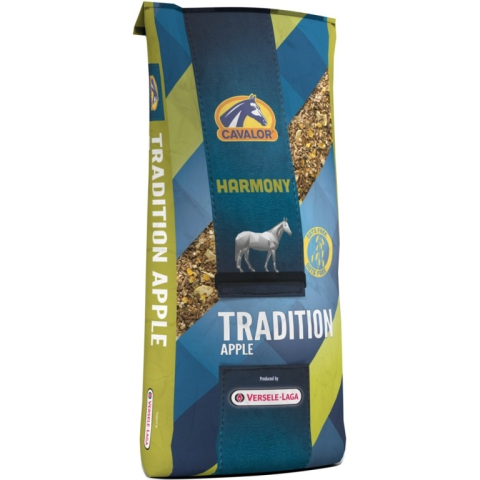A Cavalor® Tradition Apple egy zabmentes keverék, amely minden szükséges és tápláló összetételt tartalmaz a szabadidős lovak számára.Ez a különleges keverék szárított alma szeleteket tartalmaz, amelyek természetes és teljesen ízletesek.A Cavalor® Tradition Apple Florastimul-ot, egy prebiotikumot tartalmaz, amely támogatja az egészséges bélflórát.Összetétel: Árpapelyhek, búzafélék, lucerna, búza-glutén-takarmány, búza korpa, kukoricapehely, napraforgómag-takarmány, tönköly korpa, szójarost, cukorrépa-melasz, törött olajos magvak, szójababhéjak (genetikailag módosított szójaból), szárított alma szeletek 1 %, kukorica glutén takarmány, búza, kalcium-karbonát, nátrium-klorid, szója takarmány (genetikailag módosított szójaból), szójaolaj, frukto-oligoszacharidok Analitikai összetevők: Nyersfehérje 12,0%, nyers zsír 2,5%, nyers hamu 7,5%, nyersrost 10,5%, cukrok 5,5%, keményítő 28,0%, kalcium 1,25%, magnézium 0,30%, foszfor 0,65%, nátrium 0,25%, nátrium 0,25% Adalékok / kg Táplálkozási adalékok: 3a672a A-vitamin 12500 NE, 3a671 D3-vitamin 2500 NE, 3a700 E-vitamin 200 mg, 3a880 biotin 200 g, 3a890 kolin-klorid 160 mg, 3b103 vas (vas-szulfát, monohidrát) 75 mg, 3b202 jód (vízmentes kalcium-jodát) 1,25 mg, 3b304 kobalt (bevonatos granulált kobalt (II) -karbonát) 0,75 mg, E4 réz (réz-szulfát, pentahidrát) 30 mg, 3b503 mangán (mangán-szulfát, monohidrát) 115 mg, 3b603 cink (cink-oxid) 115 mg, E8 szelén ( nátrium-szelenit) 0,40 mg Technológiai adalékanyagok: E310 Propil-gallát 1,8 mg