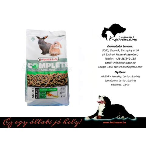 Rostokban gazdag teljes értékű törpenyúl eledel Minden egyben extrudátumok Friss zöldségekkel Anti Hairball Versele-Laga Complete Cuni Adult Törpenyúl eledelA Versele-Laga Cuni Complete teljes értékű, ízletes eleség (törpe)nyulak számára, 100 %-ban kö
