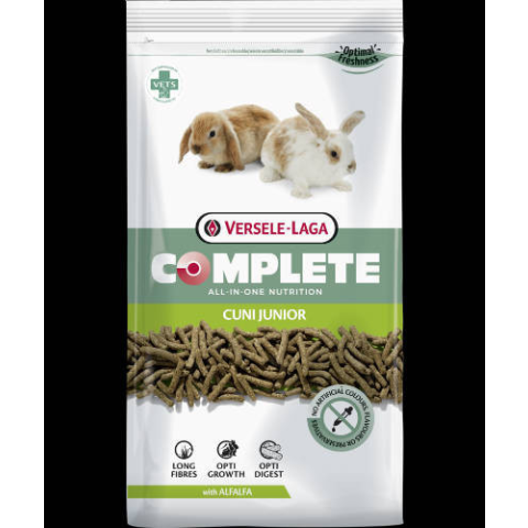 Versele-Laga Complete Cuni junior - Teljesértékű extrudált eleség fiatal nyulak részére (8kg)Minden az egyben pelletek megelőzik a válogatási reflexet.Magas fehérjetartalom, hosszú rostok, mint például a lucernaszéna, az optimális növekedésért.Gyógynövényekkel dúsított az optimális gyomor- és bélfunkcióért.