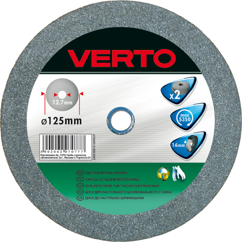 Csiszolótárcsa 150 x 20/16/12.7 x 20 mm, 2 db, szűkítő közdarabok: 20x16 mm, 16x12.7 mm, K60 A VERTO köszörűkorong asztali köszörűgépekhez való. A furathoz műanyag szűkítők alkalmazásával különféle köszörűgép-típusokhoz használhatók. Fém munkadarabok k