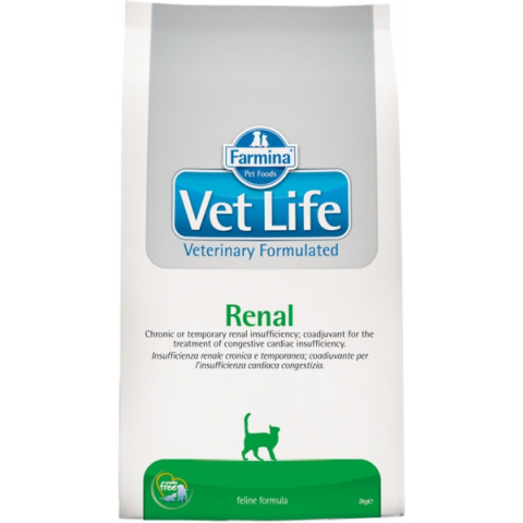 Vet Life Cat Renal száraztáp Kiegyensúlyozott diétás szárazeledel, amely tökéletesen igazodik a krónikus vagy akut veseelégtelenségben szenvedő macskák igényeihez: a Farmina Vet Life Renal Feline speciális receptúrával rendelkezik, így támogatja bársonytalpúja természetes veseműködését.A Farmina Vet Life Renal Feline kiváló minőségű fehérjéket biztosít macskájának mérsékelt mennyiségben. Emellett foszfortartalma alacsony, ami segíthet a vesék teherme