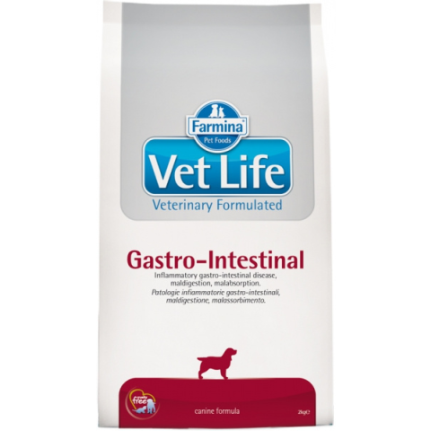 Vet Life Natural Diet Dog Gastrointestinal száraztáp A gyulladásos bélbetegségekben szenvedő kutyáknak különösen fontos a megfelelő eledel: a teljes értékű Farmina Vet Life Dog Gastro-Intestinal száraztáp olyan értékes és válogatott összetevőket tartalmaz, amelyek nagyon könnyen emészthetők, s ezáltal elősegítik az emésztési problémákkal küzdő kutyák táplálását. A Farmina Vet Life Dog Gastro-Intestinal eledel olyan kutyák számára is alkalmas, melyek em