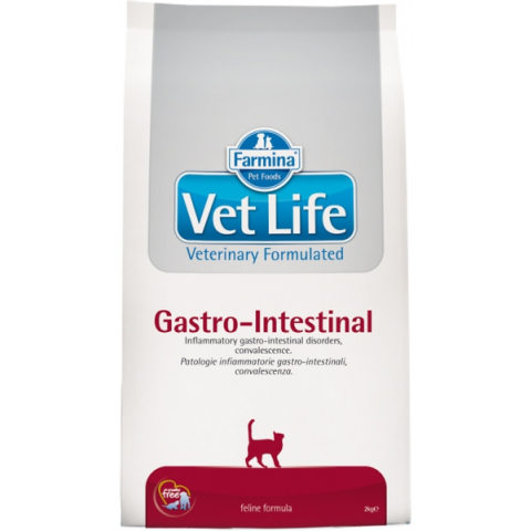 Vet Life Cat Gastrointestinal száraztáp A gyulladásos bélbetegségekben szenvedő macskáknak különösen fontos a megfelelő eledel: a teljes értékű Farmina Vet Life Cat Gastro-Intestinal száraztáp olyan értékes és válogatott összetevőket tartalmaz, amelyek nagyon könnyen emészthetők, s ezáltal elősegítik az emésztési problémákkal küzdő macskák táplálását. A Farmina Vet Life Cat Gastro-Intestinal eledel olyan macskák számára is alkalmas, melyek emésztőren
