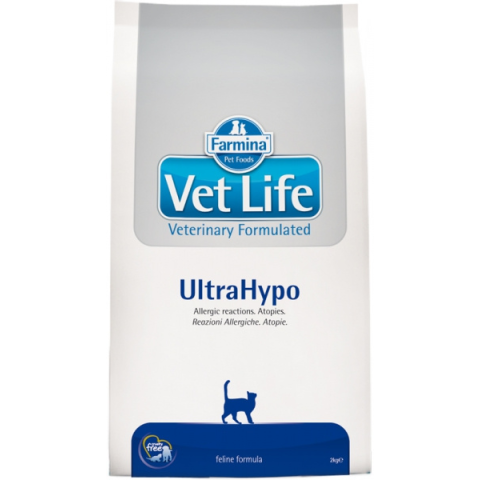 Vet Life Natural Diet Cat Ultrahypo száraztáp  Az érzékeny macskáknak különösen fontos a megfelelő eledel: a teljes értékű Farmina Vet Life Cat Ultrahypo száraztáp olyan értékes és válogatott összetevőket tartalmaz, amelyek nagyon könnyen emészthetők, s ezáltal elősegítik kedvence hipoallergén táplálását. Nemesített rizskeményítővel készül és nem tartalmaz növényi fehérjéket - hatékonyan képes megelőzni az allergiákat. A Vet Life Cat Ultrahypo h