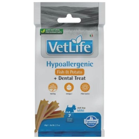 1 kép VET LIFE Natural Diet Dog Jutalomfalat Hypo Fish&potato Adult Mini 60g
