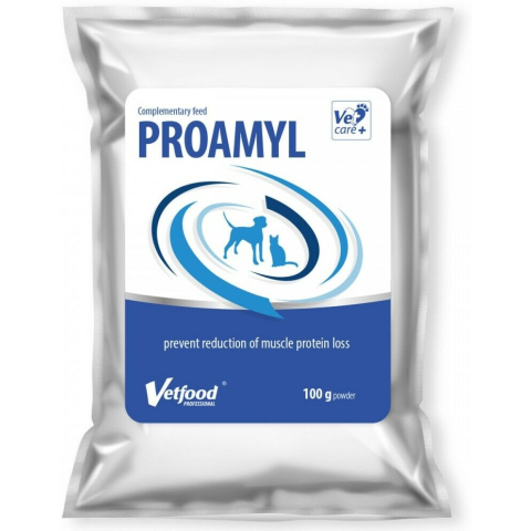 A VetFood Proamyl por egy magas aminosav tartalmú készítmény az izomtömeg megőrzésére és a fehérjeanyagcsere támogatására kutyák, macskák és kisragadozók részére. Használata kifejezetten javasolt alultápláltság, izomsorvadás esetén és különféle betegségek során a lábadozási időszakban.Táplálékkiegészítő kisokos kutyáknak és macskáknak: