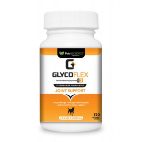 A GLYCO FLEX 3 táplálék kiegészítő rágótabletta a komolyabb ízületi és kötőszöveti problémák esetén nyújt támogatást a kutyák számára. Állatorvosok által ajánlott az idősebb kutyák és munkakutyák számára is, továbbá az ortopédiai műtétek utáni felépülés során.