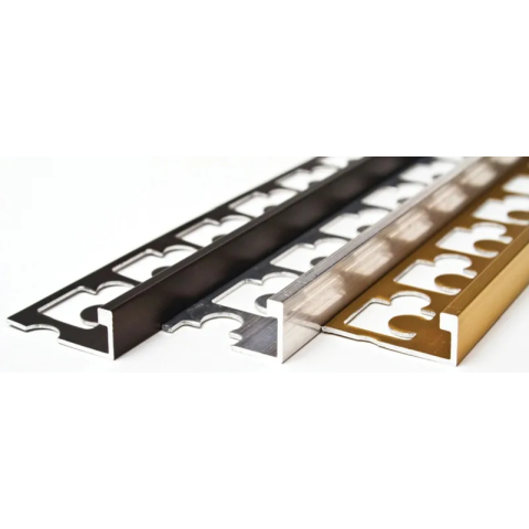 Prémium szögletes "L" csempe élvédő eloxált alumíniumból, ezüst - arany - bronz - titán színekben, 8 mm (max . 7 - 8 mm vastag csempéhez), az ezüst, és a bronz színű 2,5 m, az arany, és a titán színű 2,7 m hosszú.