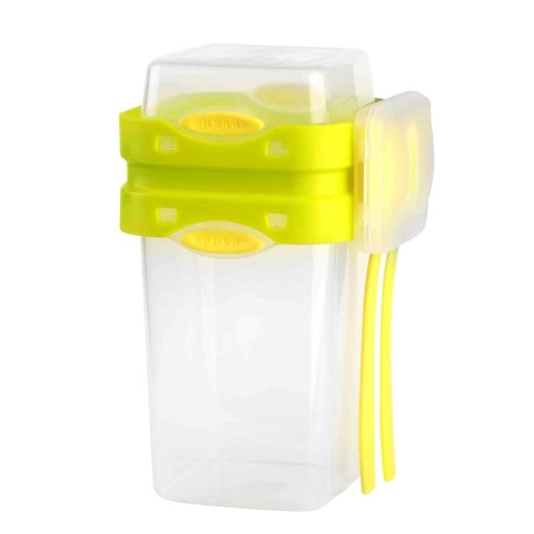 Uzsonnás doboz - vízálló, fedél klippes rögzítéssel, evőeszköz tárolóhely a csomag része, alkalmas mosogatógépbe, mikrohullámú sütőbe és fagyasztóba, anyaga műanyag, evőeszköz a csomagban, áttetsző és sárga kivitel, 2 darabos készlet A formatervezett Vialli Design uzsonnás doboz szilárd kapcsokkal ellátott, biztonságosan lezárja a tartalmát, és 0,88 l térfogattal rendelkezik. A belső elválasztóelemek hiánya maximális szabadságot b