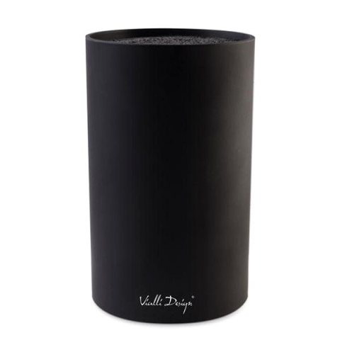 Késtartó - blokk, csúsztatható, hengeres alakú, sörték, magassága 180 mm, átmérője 110 mm, fekete kivitel A Vialli Design NERO késtartó kiválóan alkalmas kések tárolására. A fekete blokk tökéletes minden konyhába, és klasszikus méretének, valamint modern dizájnjának köszönhetően jól illeszkedik a konyhapu
