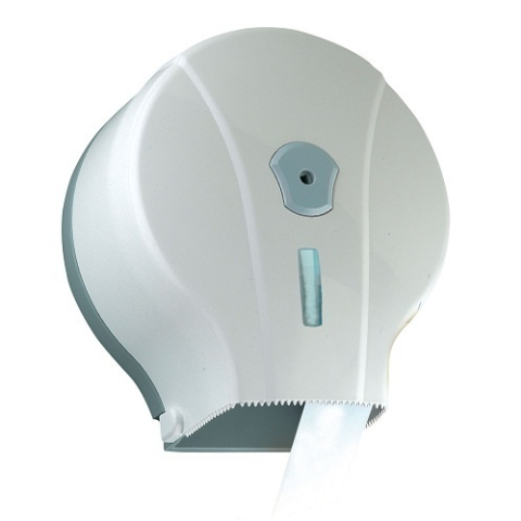 - Vialli Mini Jumbo toalettpapír adagoló, ABS műanyag házzal, nagytekercses toalettpapír adagoló, fehér színben.