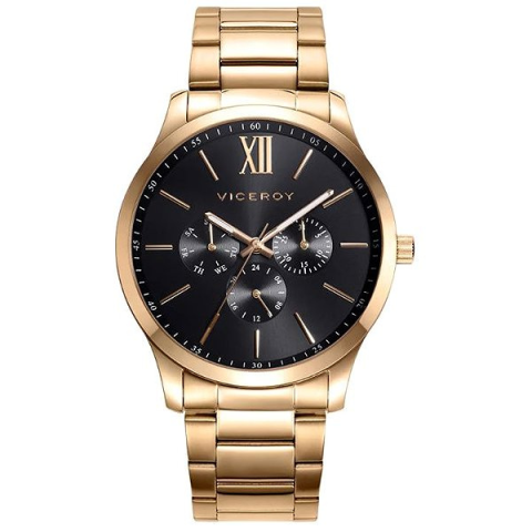 Karóra férfiaknak - analóg idő megjelenítés, óramű típusa quartz, kerek számlap, ásványi számlap, 50 m (5 ATM) vízhatlanság, a tok anyaga acél, a tok színe arany, a szíj anyaga orvosi acél, a szíj színe arany, cserélhető szíjjal A klassz Viceroy Magnum 401187-93 férfiaknak karóra nagyszerű viselet hétköznap és ünnepnap is. Az alapját egy 43 mm-es kerek számlap alkotja. A Quartz technológia hosszú élettartamot és precíz időmér