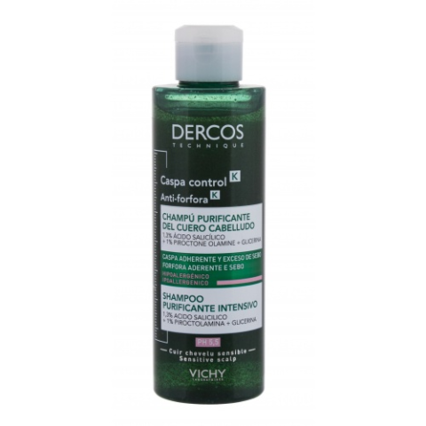 Vichy Dercos K korpásodás elleni sampon hámlasztó hatással letapadt korpára és a haj zsírosodása ellen. Kíméletesen hámlasztó összetételének köszönhetően a Dercos K korpásodás elleni sampon alaposan távolítja el a korpát, a felrakódott zsíros plakkoka