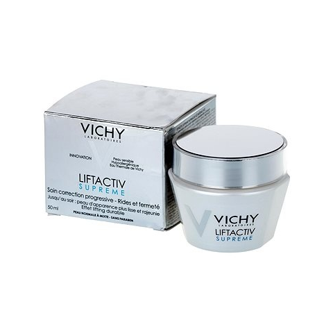 Arckrém - női, bőrtípus: normál, kombinált és érett, hatás: hidratáló, világosító, ránctalanító és feszesítő, 50 ml A VICHY Liftactiv Supreme Day Cream arckrém egy rendkívül hatékony segítség a ráncok elleni küzdelemben. Ez a krém speciálisan a normál bőr igényeihez készült, aminek segít fenntartani az optimá