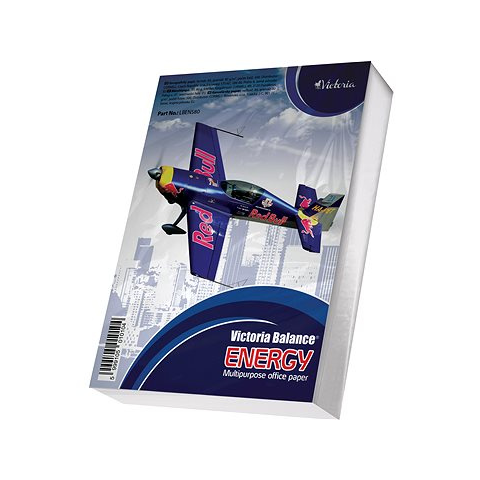 Irodai papír - 500 lap, formátum: A5, lézernyomtatóhoz és tintasugaras nyomtatóhoz, anyagsűrűség 80 g/m2, fehérség 146 CIE Az A5-ös Victoria Balance Energy fénymásólópapír többféle célra is használható. Ez a kimagasló fehérségű papír kiválóan alkalmas nagy sebességű és kétoldalas nyomtatáshoz. Ez a termék garantáltan elny