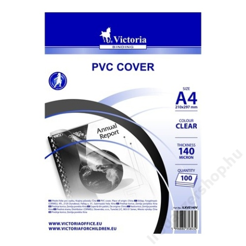 Előlap, A4, 140 mikron, VICTORIA, víztiszta (ILKVE140V) A4 méret víztiszta kiszerelés: 100 db/doboz Itt megtekinthető és letölthető a használati útmutató. Gyártó/első EU forgalmazó elérhetősége: Corwell Kft 2120 Dunakeszi, Pallag utca 37. victoria@