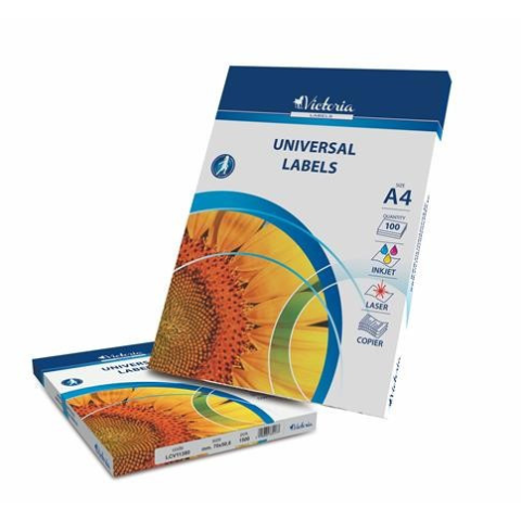 Etikett öntapadós, univerzális 70x36 mm , VICTORIA márka. 2400 etikett/csomag. Cikkszám: LCV11388 Az ár egy ívre vonatkozik! Általános felhasználásra Fénymásológépekben, lézernyomtatókban és tintasugaras nyomtatókban használható Gazdaságos lehetőség kis