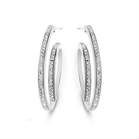 Victoria Ezüst színű fehér köves karika fülbevaló Ezüst színű. Anyaga: rozsdamentes acél 1 pár fülbevaló
