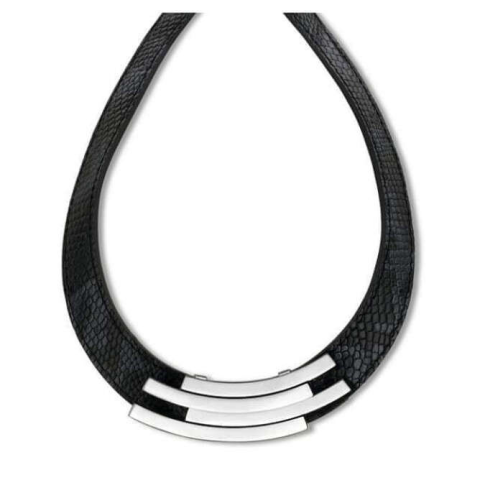 1 kép VICTORIA Ezüst színű fekete bőr nyaklánc