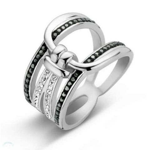 Victoria Ezüst színű fekete, fehér köves gyűrű Ezüst színű. Anyaga: rozsdamentes acél Méret: 54 (17,2 mm)