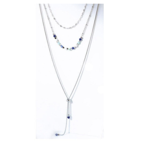 VICTORIA Ezüst színű színes gyöngyös nyaklánc 92cm