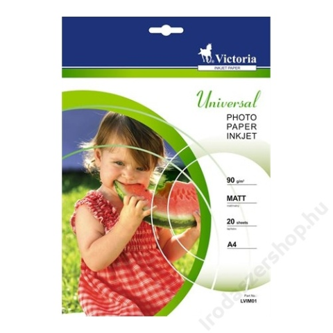 Fotópapír, tintasugaras, A4, 90 g, matt, VICTORIA Universal (LVIM01) - matt felület - azonnali száradás - 90, illetve 180 g/m2 - prezentációk, grafikák, kimutatások nyomtatásához ajánlott Itt megtekinthető és letölthető a használati útmutató. Gy