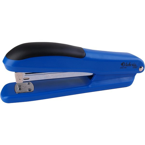 Irodai tűzőgép - asztali, nyitott és zárt tűzés, felső újratöltés, 24/6 kapocsmérethez, tűzési kapacitás akár 20 lap, csúszásgátlós alsó rész, anyaga fém és műanyag, kék kivitel, mérete 0,55 × 3,8 × 16,5 cm (Ma×Sz×Mé), tömege 170 g A kitűnő VICTORIA fűzőgép egy univerzális segédeszköz, amely megkönnyíti az irodai és az otthoni teendőidet is. Akár 20 lap összefűzésére is használható. A csúszásmentes talp biztosítja, hogy stabil m