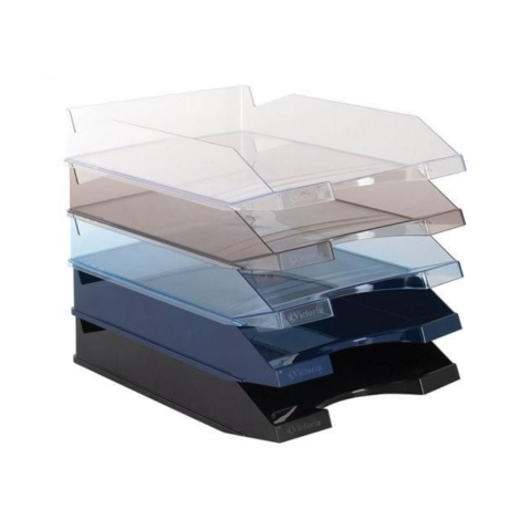 Egymásra helyezhető, fekvő műanyag irattálca, a napi iratok tárolására.
