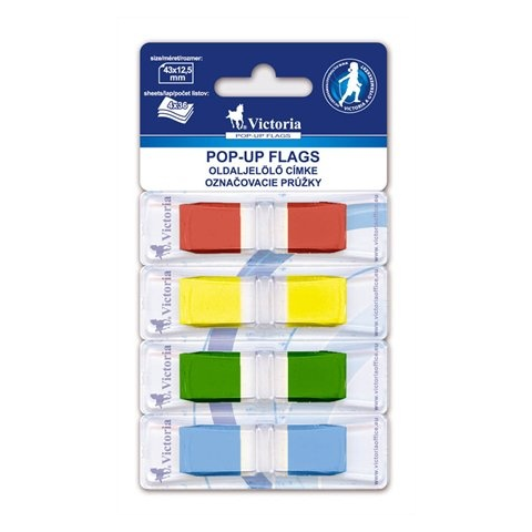 VICTORIA Jelölőcímke, műanyag, 4x36 lap, 43x12,5 mm, VICTORIA, vegyes szín