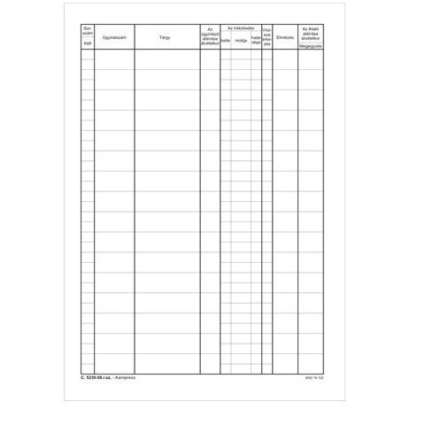 Felhasználási terület: Elsősorban az állam-, és közigazgatásban használt, ez egyedi ügyek nyilvántartására szolgáló nyomtatvány. 20 lapos tűzött füzet, A/4, álló, Karton borítás, 80 gr-os ofszet papír belívek. Katalóguskód: 2326 Hiteles tájékoztatás: Elkötelezettek vagyunk termékeink biztonságának garantálásáért, nyomon követjük a termékbiztonsággal kapcsolatos valamennyi európai uniós és hazai szabályozást és biztosítjuk termékeink azoknak tö