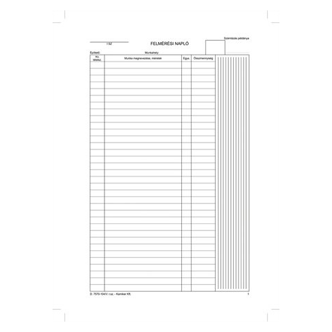 VICTORIA Nyomtatvány, felmérési napló, 25x5, A4, VICTORIA "D.7570-104"