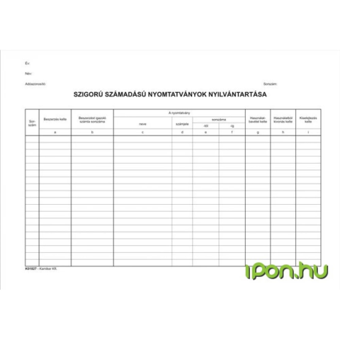 VICTORIA Nyomtatvány, szigorú számadású nyomtatványok nyilvántartása, 25 lap, A4, VICTORIA