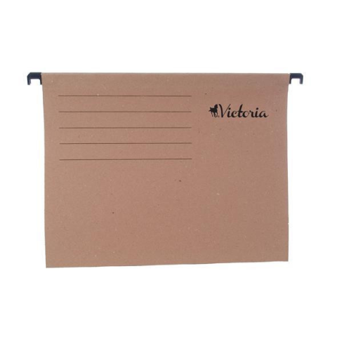 Függőmappa, karton, A4, VICTORIA OFFICE, natúr -magas minőségű újrahasznosított manila karton alapanyag -műanyag címketartó -225 g/m2 karton -A4 méretű dokumentumok tárolására -a színek megkönnyíti a rendszerezést -feliratozható, vonalazott felület -6
